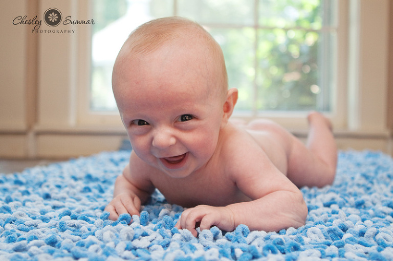 Most 3 month olds pretty much hate when you put them on their belly, but not this guy.  He hammed it up immediately, and I captured some of the funniest expressions!  Thank you guys for having us out today.  We enjoyed our time (and our goldfish) and can’t wait to see everyone again soon!!